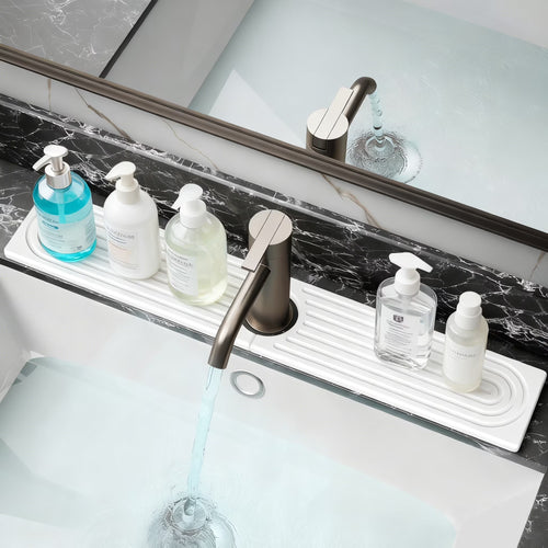 Kitchen Sink Mat, White Diatomite Sink Tray with Drain Hole - Super Absorbent Drying Mat Prevents Water Stains & Mold, Non-Slip Faucet Splash Guard